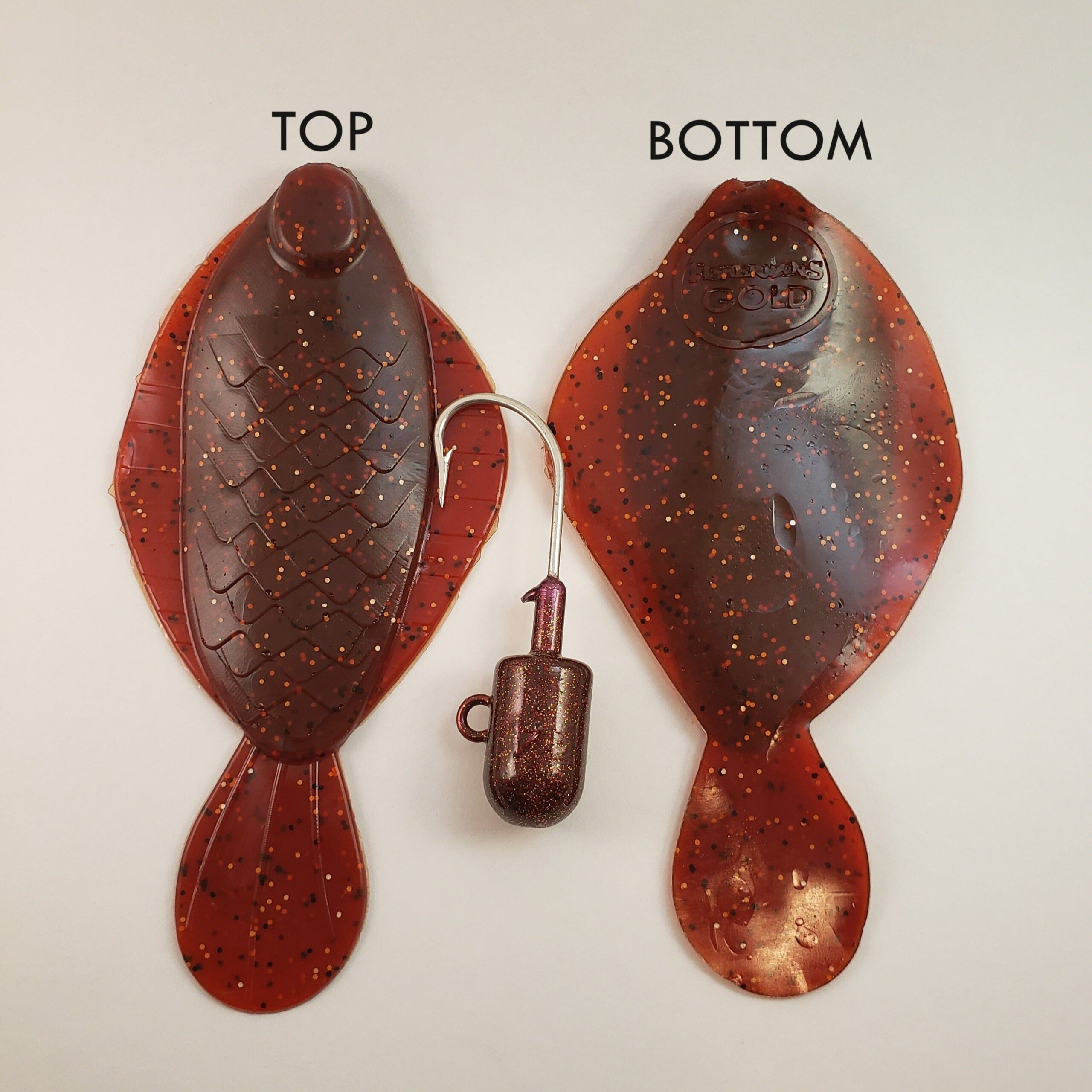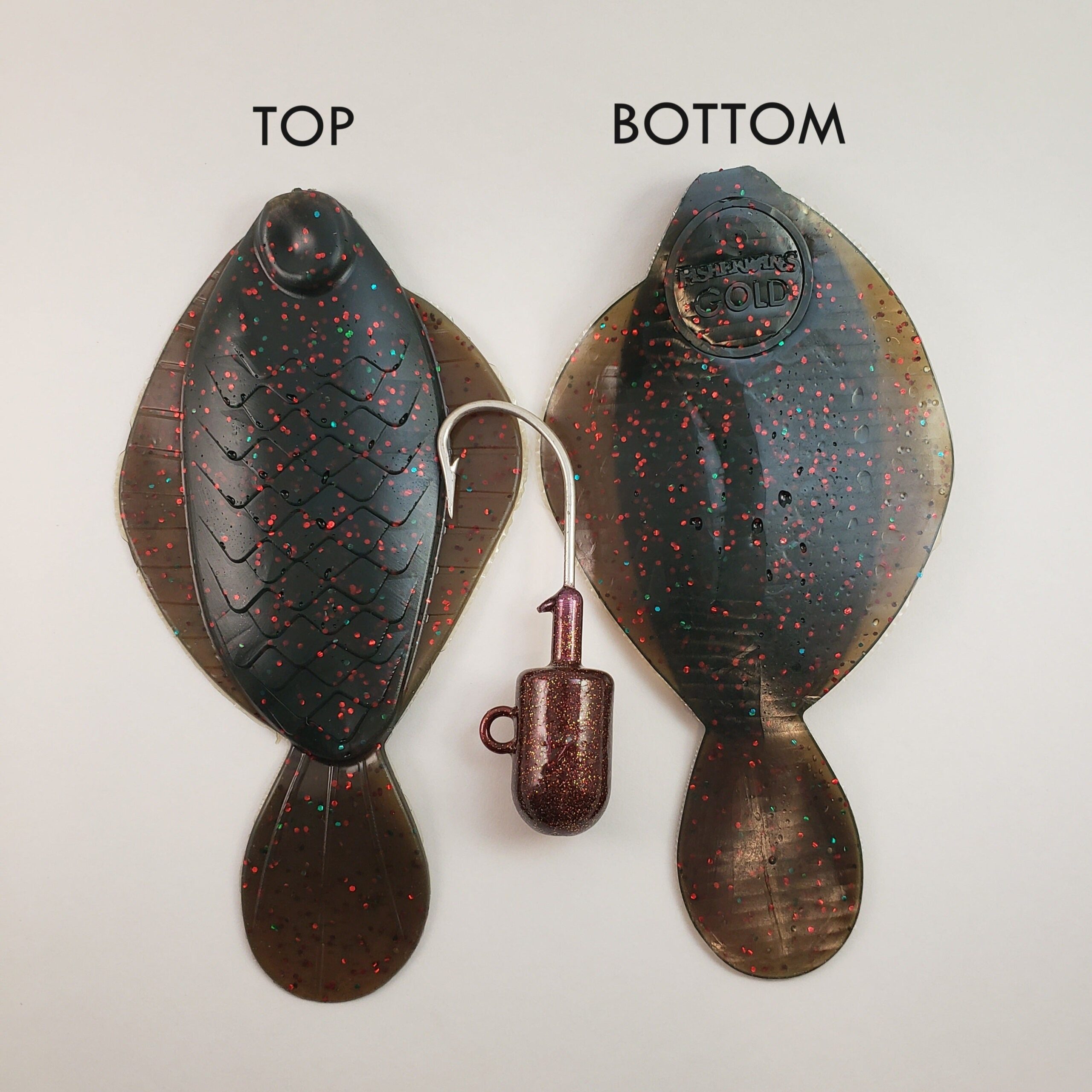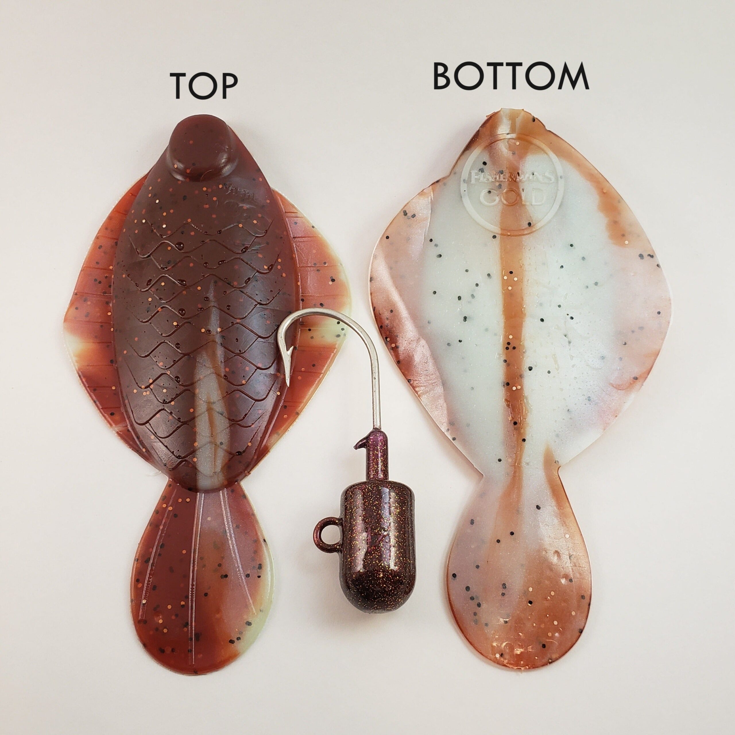 Flounder Pounder Kit includes one 6-1/2″ Plastic Flounder and one 4 oz. baked root beer or oil can powder coated bullet head jig.